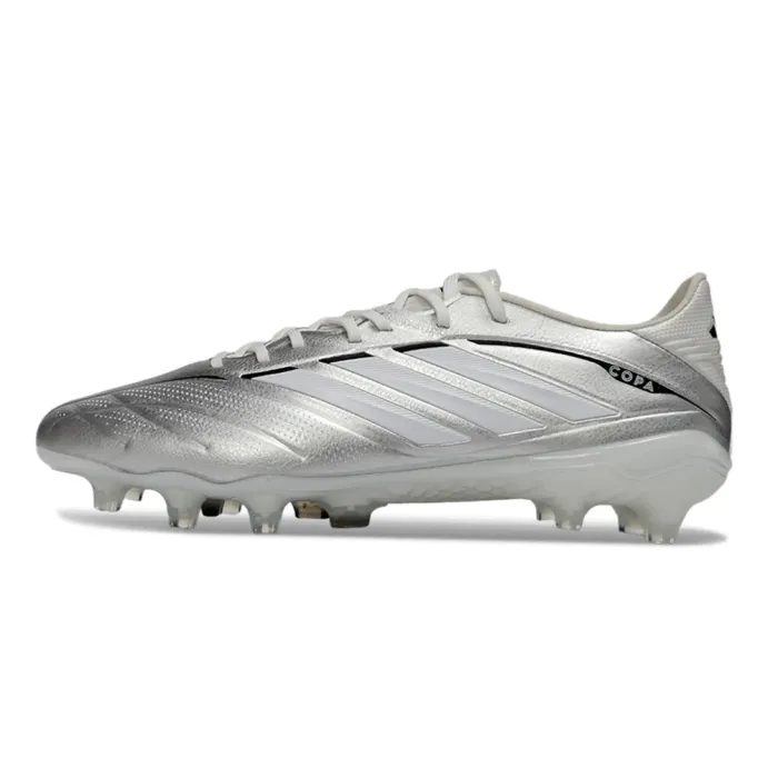 adidas Copa Pure IV Elite FG in Taupe Metallic / Zero Metallic / Night Metallic delivers understated elegance for the modern playmaker. Taupe base, zero metallic accents, and night metallic details—wrapped in premium K-leather for a glove-like fit and barefoot ball control.