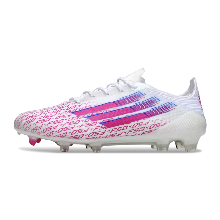 The adidas F50 Elite FG arrives as Trinity Rodman's signature 'Sparkfusion' edition—pearlescent White with bold Lucid Pink stripes, inspired by her signature long pink braids . Built with a women's-specific Fibertouch upper and Sprintframe Fusion soleplate, it delivers explosive speed when every second counts .