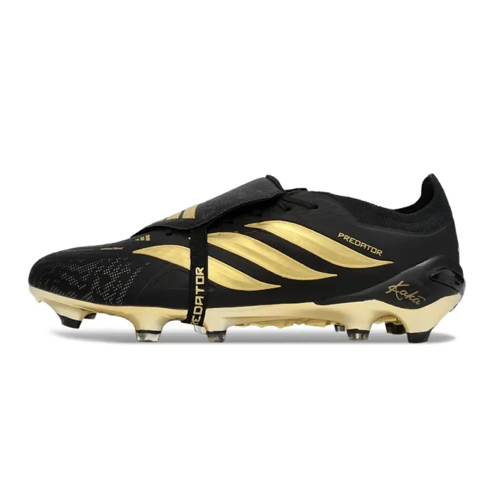 Classic fold-over tongue, sleek black base, and gold metallic accents—reissued for playmakers who grew up watching Kaka glide past defenders with elegance and speed.